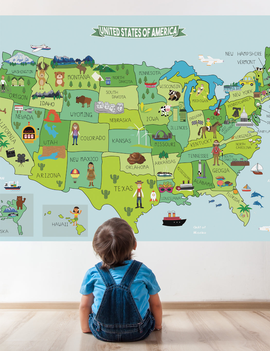 US Map Wall Decal United States of America Sticker Peel and Stick Kids