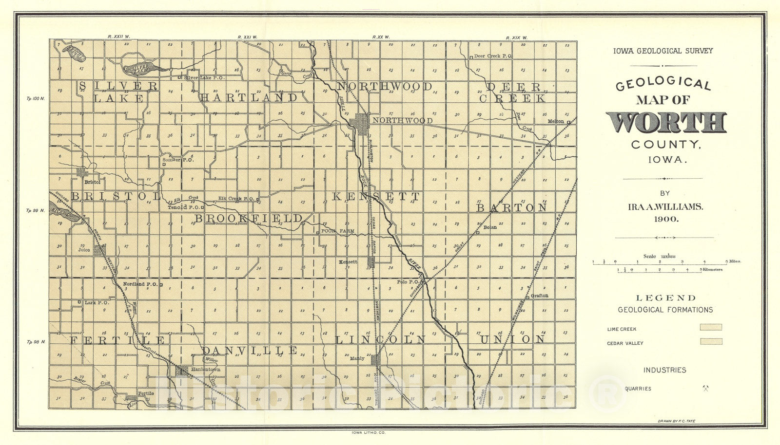 Map : Geology of Worth County [Iowa], 1900 Cartography Wall Art